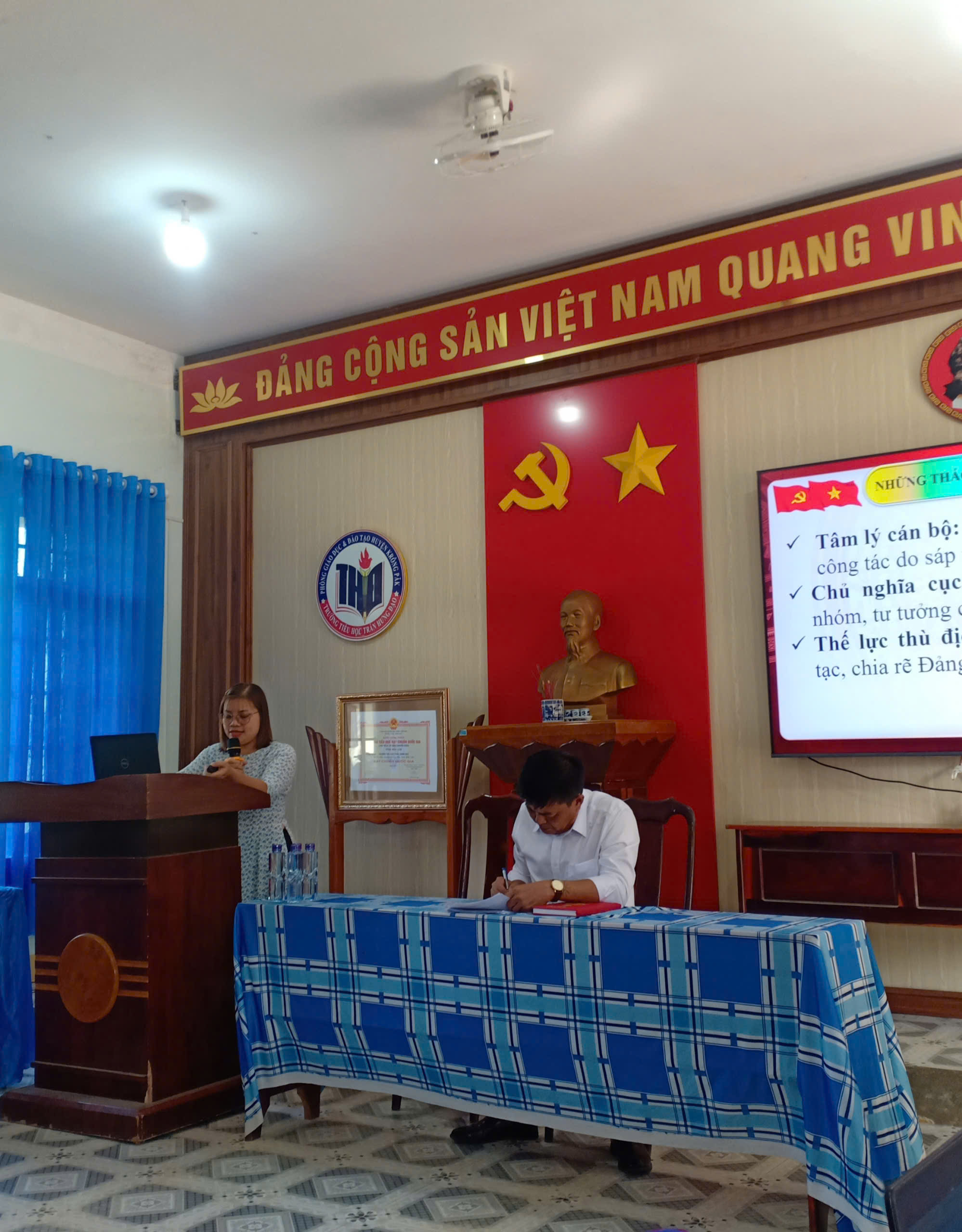 Tham dự còn có toàn thể đảng viên Chi bộ Trường Tiểu học Trần Hưng Đạo và đại diện Ban Giám hiệu nhà trường.